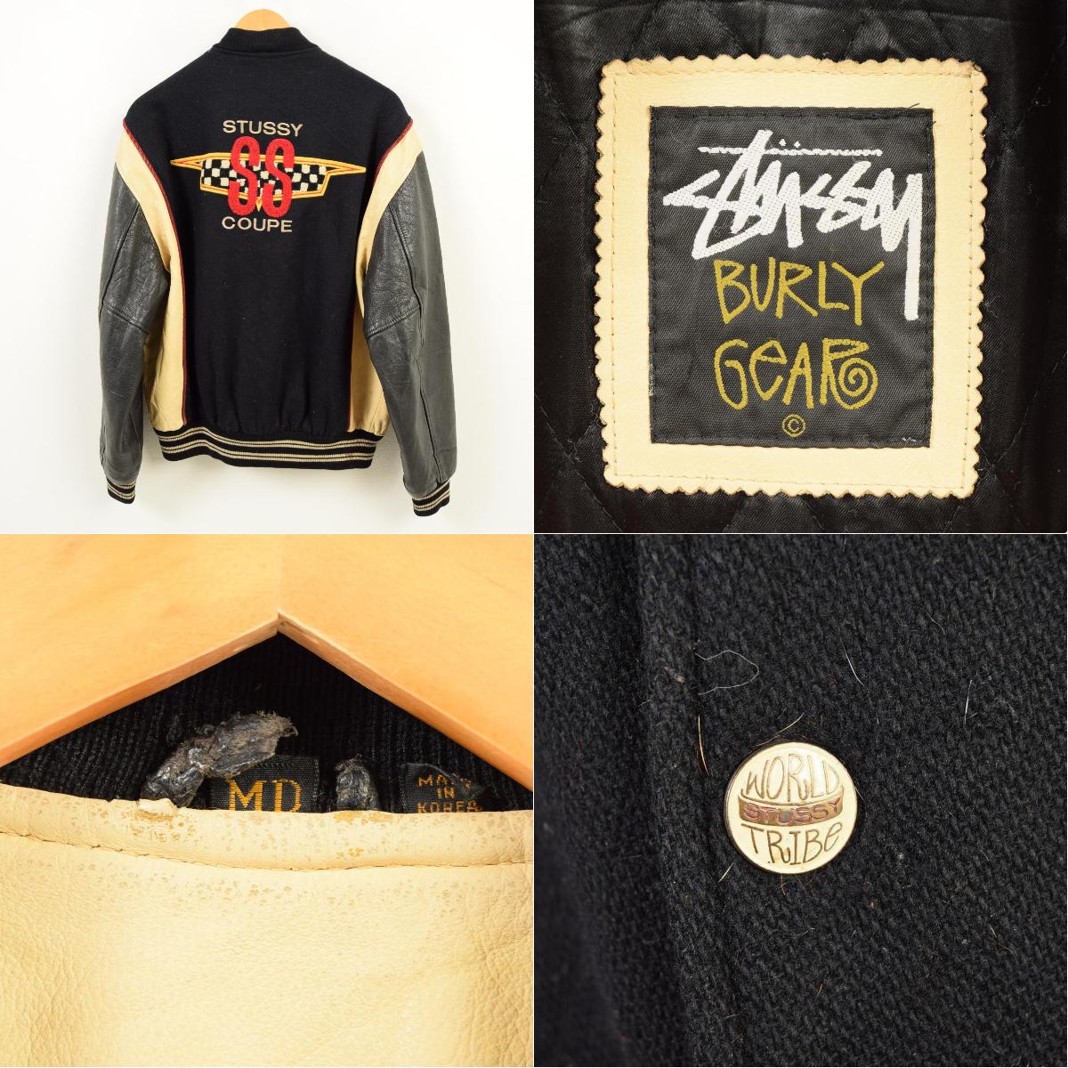 希少レア 90年代 ステューシー STUSSY OLD STUSSY オールドステューシー BURLY GEAR SS COUPE VARSITY JACKET 袖革ウールスタジャン アワードジャケット MD メンズL ヴィンテージ /wax0280 【中古】【n1901】 【181222】【TS1911】【M2001】【SVTG】【N2005】